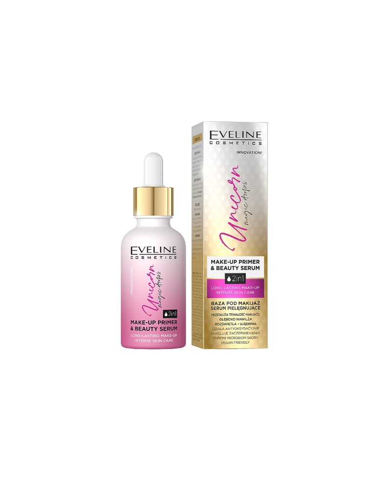 Η βάση προσώπου της Eveline Unicorn Magic Drops Beauty Make Up Primer & Beauty Serum είναι ένα καινοτόμο υγρό προϊόν που παρατείνει το κράτημα του μακιγιάζ και θρέφει δραστικά την επιδερμίδα.