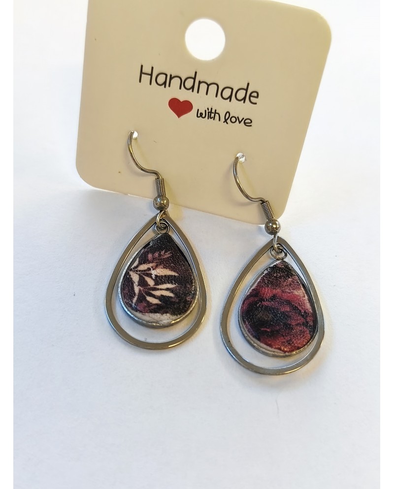 Χειροποίητα σκουλαρίκια σε σχήμα δάκρυ με λουλούδι. Είναι από Ανοξείδωτο ατσάλι.