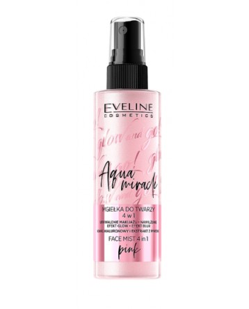 Eveline Glow And Go! Aqua Miracle Face Mist 4in1 PinkΣπρέι λάμψης για σταθεροποίηση μακιγιάζ 4σε1. Ηλικία: 18+Μέγεθος: 110 ml